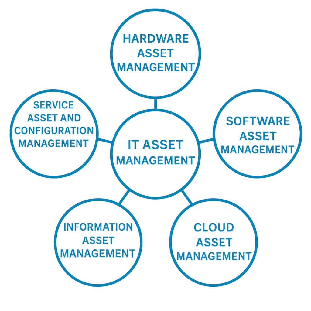 IT Asset Management is not a single discipline but a collection of interconnected practices that together form a holistic governance framework. HAM governs physical devices, SAM ensures compliance with software licenses, CAM manages dynamic cloud services, IAM safeguards organizational information, and SACM ties them all together by mapping their relationships.
